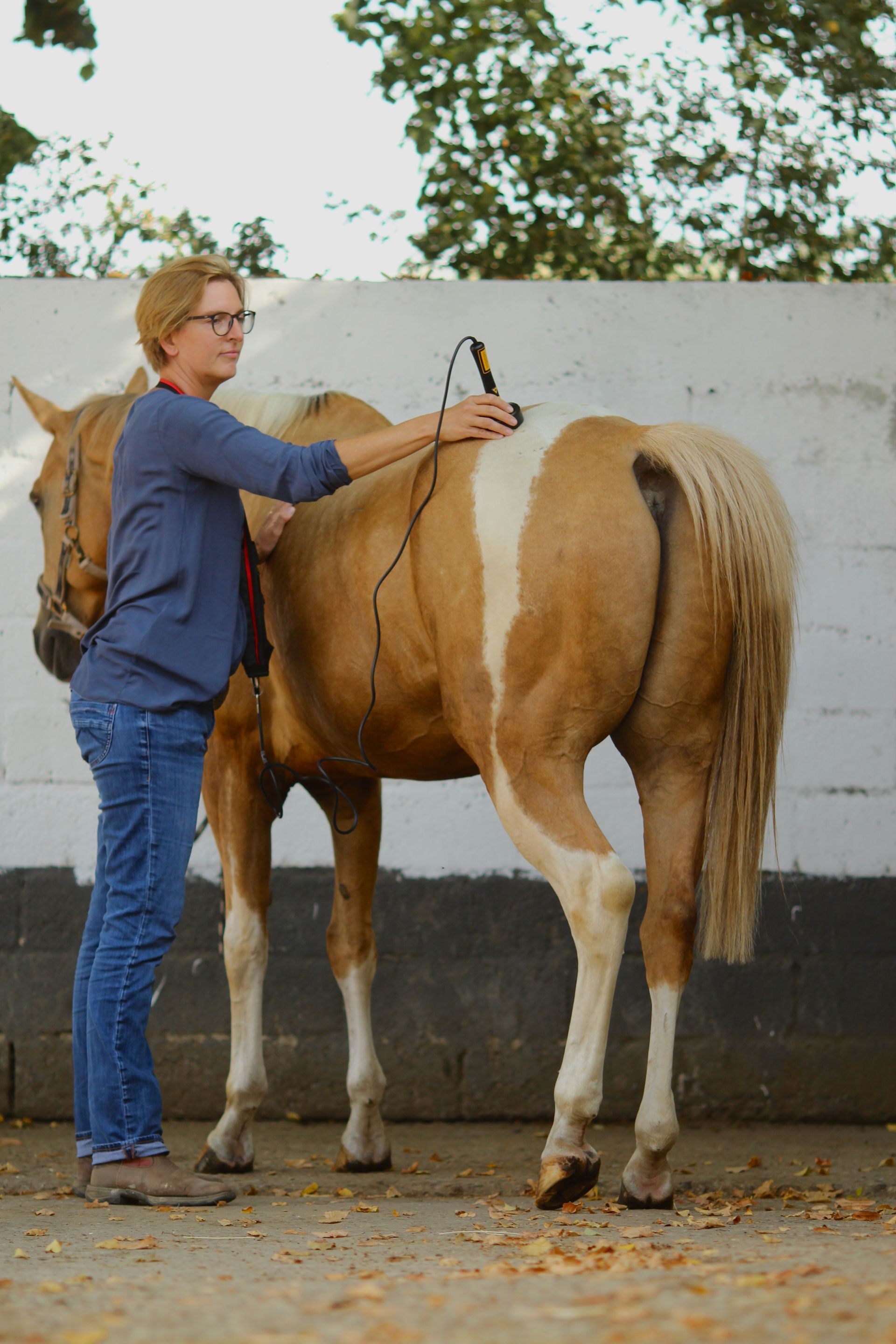 Zunächst erfolgt eine gründliche Anamnese, sowohl im Gespräch mit dem Tierhalter als auch die Untersuchung am Tier. Dann werden die ausgewählten Zielgebiete mit dem Laser behandelt. In den meisten Fällen ergänze ich die LLLT mit einer weiteren Behandlungsform, um die Wirkung zu vertiefen und zu intensivieren.